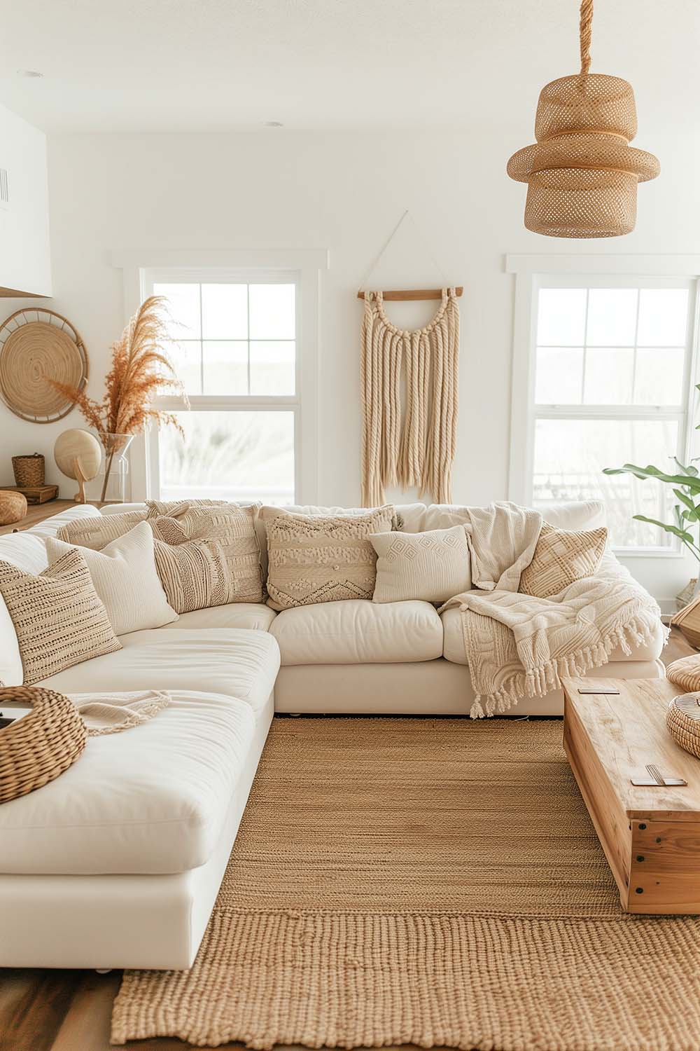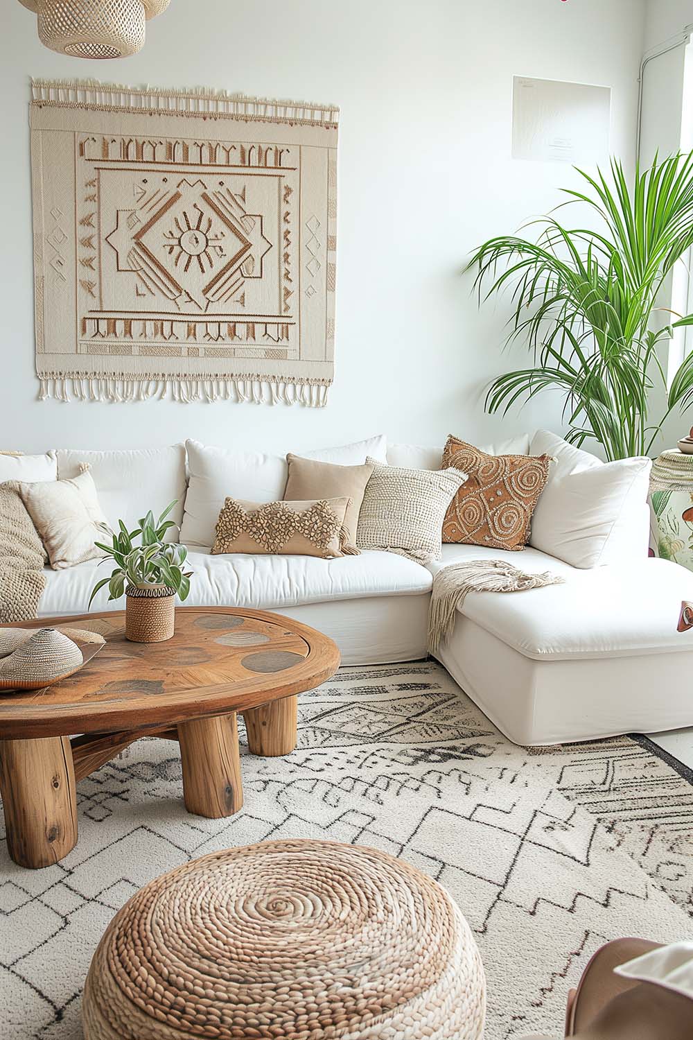 Incorporate jute material into your boho living room decor for a natural and textured look.